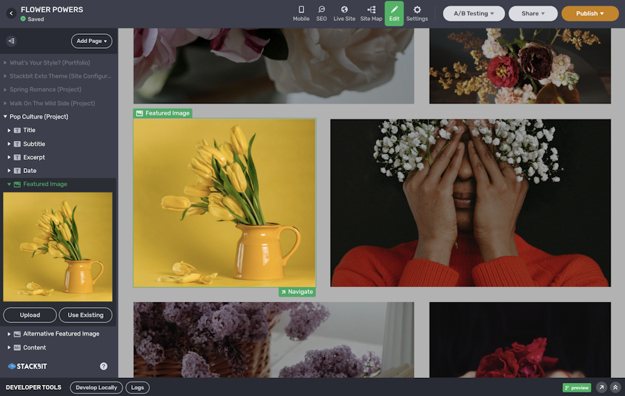 Stackbit’s Jamstack platform makes creating, updating, and collaborating on Jamstack sites as easy as point and click. Our Site Builder takes the hassle out of creating Jamstack sites with multiple tools and integrations, and our Studio provides a layer of usability for content editing with live previews, inline editing, collaboration features and more. Whether you’re a developer working on the Jamstack, a marketer looking to leverage modern web tech, or an agency trying to shift clients away from old, legacy systems — Stackbit handles all the details for you behind the scenes so your site can be more powerful, and you can be free to focus on your work.